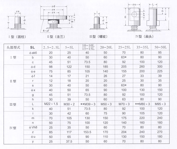 1型結(jié)構(gòu)型式的絲桿頭部分為:I(圓柱型)Ⅱ(法蘭型)Ⅲ(螺紋型)Ⅳ(扁頭型)四種型式